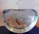 Apple Style Crystal £26.99 Size 80x52x40mm An actual apple shape including stem in clear crystal with a flattened base. This crystal is ideal for head shots & new born babies and younger children.